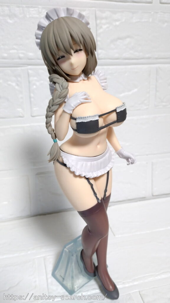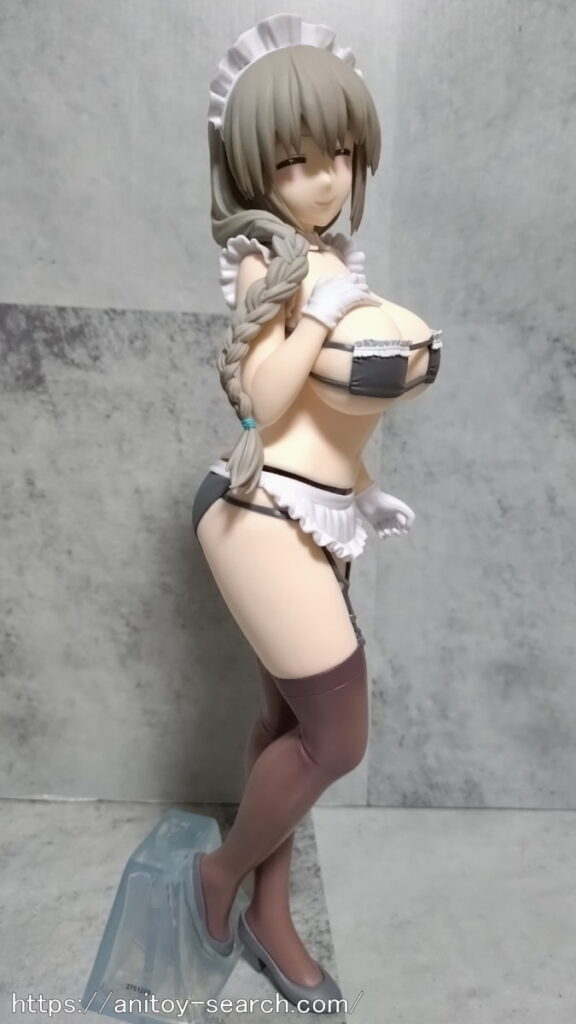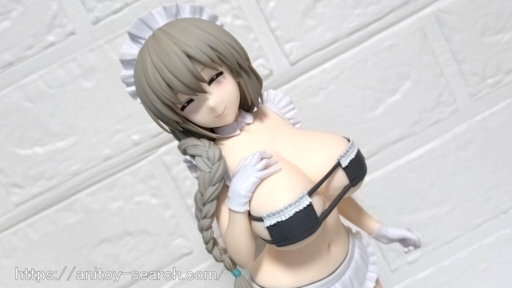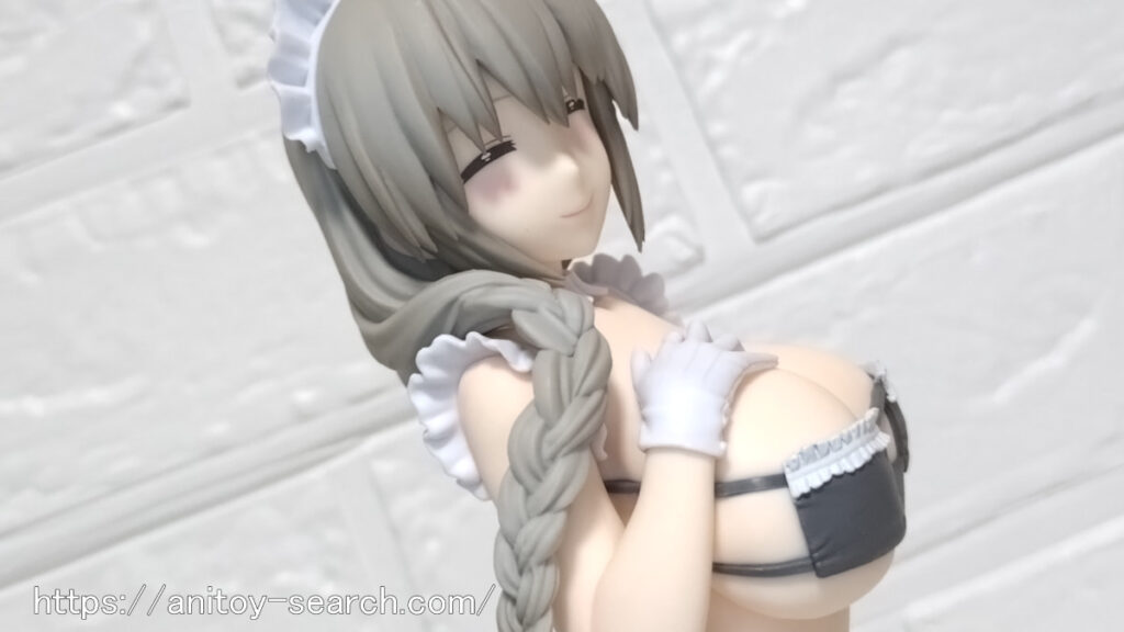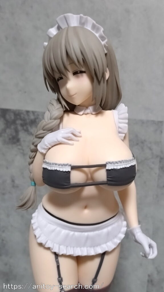 そんな限界スレスレの『宇崎月』フィギュアですが、開封して見るとヤバさが限界突破しておりますw一応メイド服風水着という事ですが、確実に泳ぐのを想定していない水着で、プールにいたら確実に外に放り出されるデザインでしょうw